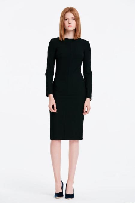 Безусловный фаворит всех представительниц прекрасного пола – платье-футляр. Такую любовь данная модель получила благодаря своей универсальности. Футляр хорошо «садиться» на любую фигуру, делая ее более изящной и женственной. Идеальная длина такого платья до середины колена, наличие драпировки и заломов зависит от вашего вкуса и телосложения (на стройных дамах лучше смотрятся модели без лишнего декора, а вот женщинам с пышной фигурой можно выбрать наряд с акцентными деталями). В дополнение к образу подойдут классические туфли-лодочки, а при необходимости талию можно подчеркнуть тонким поясом.