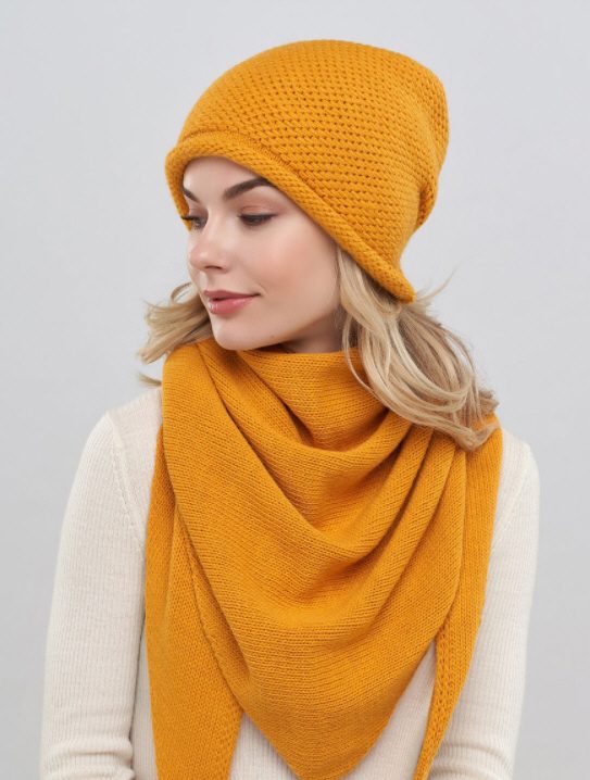 в идеале выбирать шапку в комплекте с шарфом и варежками в том же цвете и фактуре.