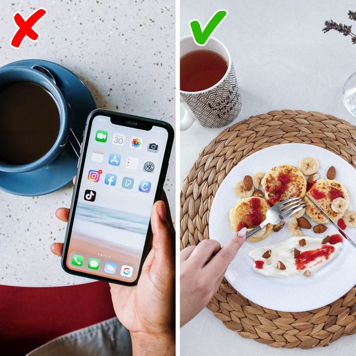 Можно ходить в дорогие рестораны, покупать продукты только в магазинах здорового питания и беспрекословно следовать рекомендациям личного диетолога. Но всему этому грош цена, если вы поглощаете пищу на бегу, не отрывая глаз от экрана смартфона или телевизора. Уделяя больше времени приему пищи, можно не только улучшить пищеварение, но и укрепить отношения с самим собой.
