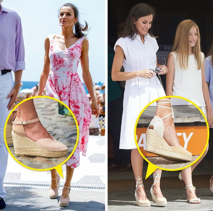 Поэтому важно выбирать удобные каблуки — даже небольшой каблук может быть изящным, и это без жертв в виде боли в ногах. Например, испанская королева Летисия часто появляется на публике в туфлях и босоножках на небольшой танкетке, которые и выглядят стильно, и не перегружают ноги.
