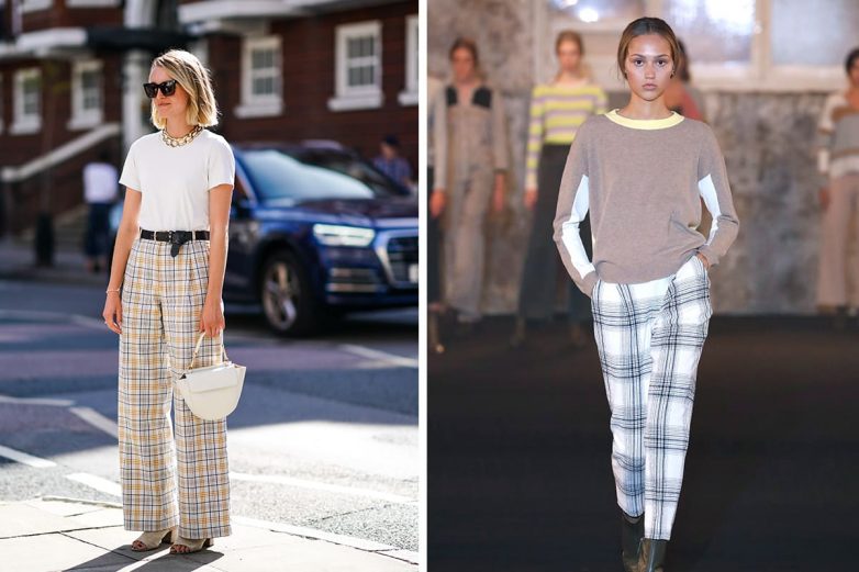 Брюки в клеткуБрюки в клетку прямого кроя — одна из самых актуальных вещей в этом и следующем году. К тому же эта универсальная модель прекрасно подходит для женщин с любым типом фигуры.
