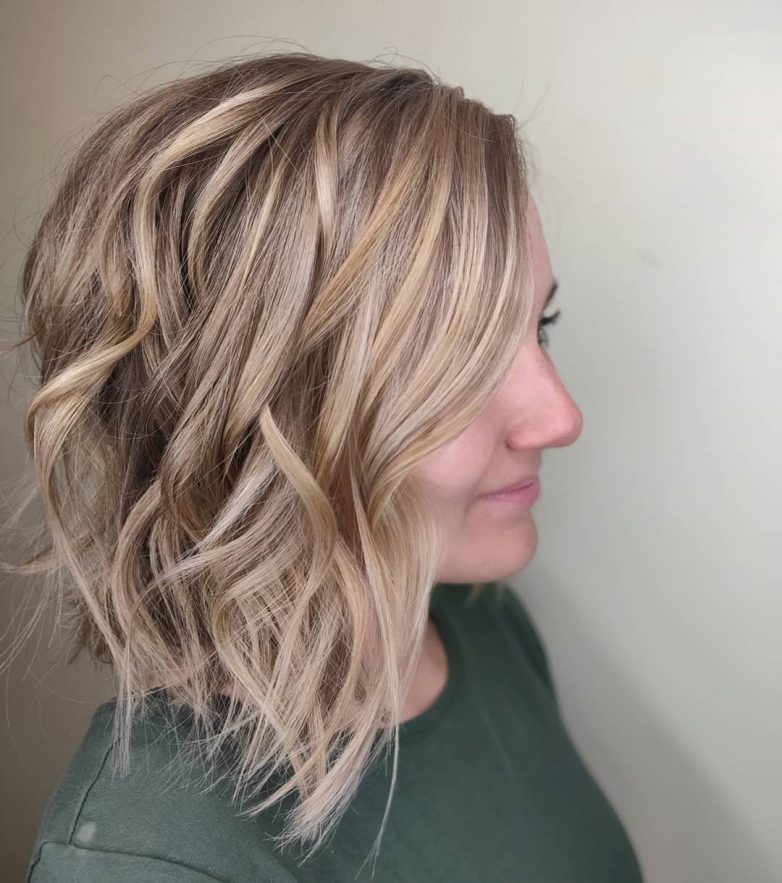Боб — чудесная стрижка для женщин 40-50 лет. Она прекрасным образом добавляет волосам нужный объем, делает образ более свежим и модным. Прекрасно боб работает и с косой челкой на бок, которая может быть совершенно разной длины и структуры. Чтобы сделать свои волосы визуально более густыми, можно обратиться к рваному варианту челки.