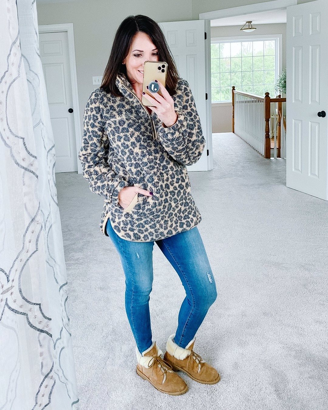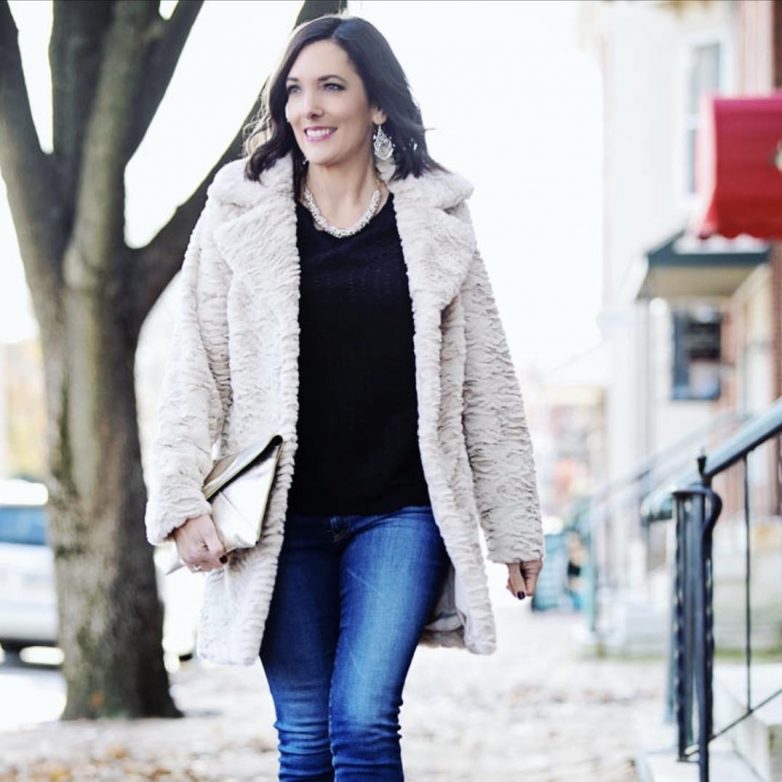 Стильные зимние образы с джинсами для дам за 40