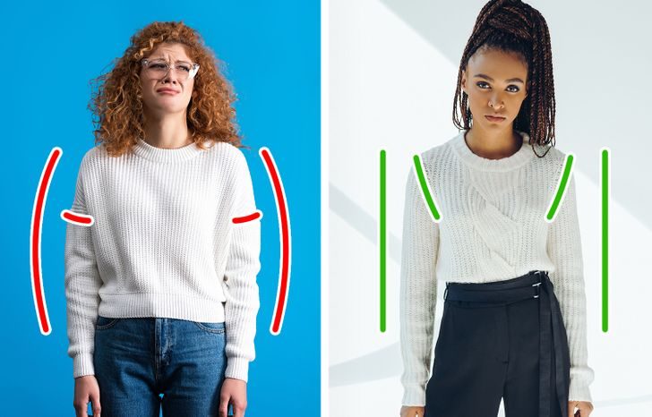 Помимо чересчур широких пройм об излишней величине вещи может сказать пустота, образующаяся на уровне лопаток. В основном это касается приталенных платьев и блузок, так как линия талии тесно связана с вашим ростом и пропорциями тела.