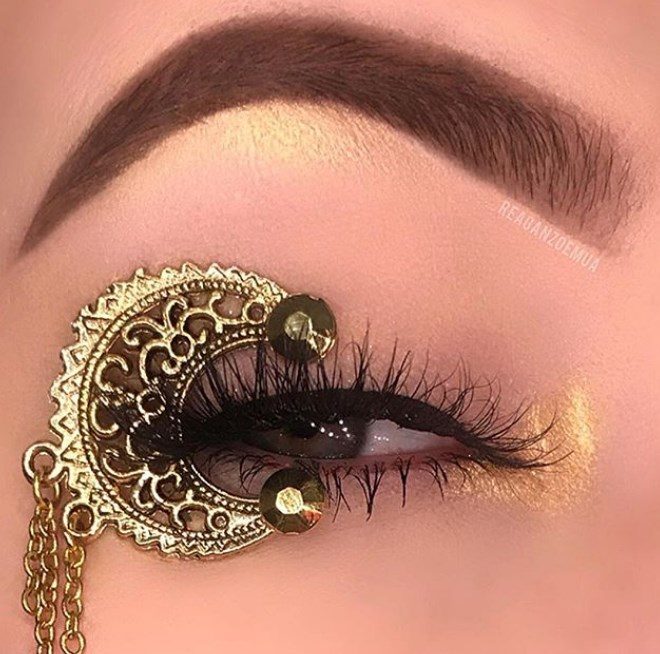 Особенно актуально смотрится для карих глаз восточный макияж с черной подводкой и акцентом на внутренних уголках.