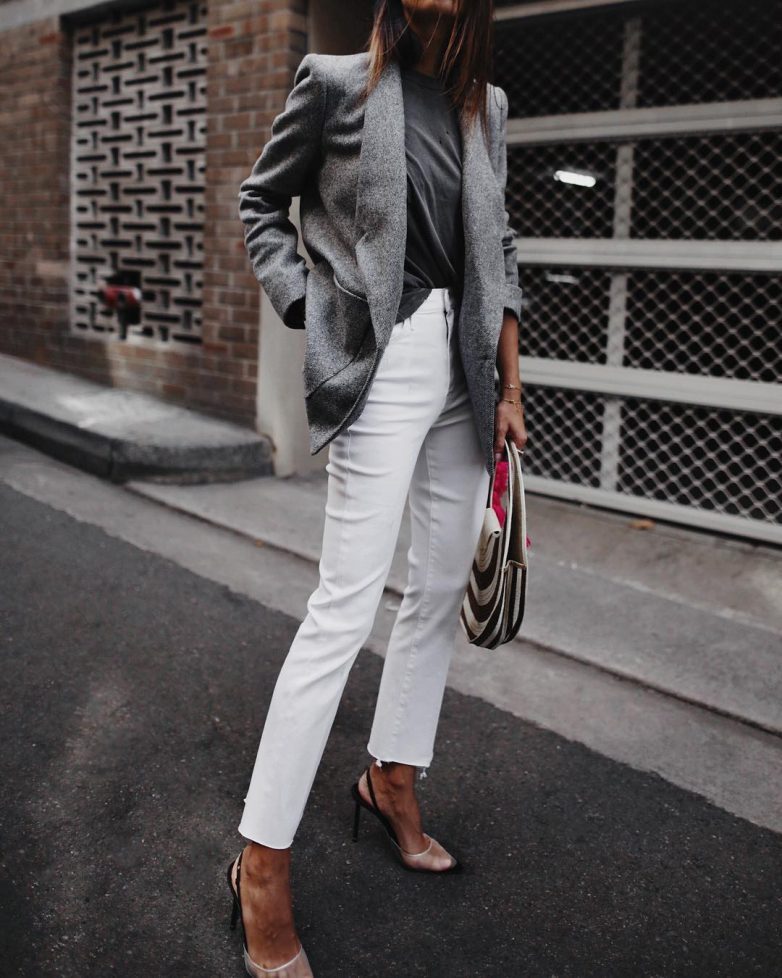 Серый цвет – это второй оттенок после черного. С ним также можно собирать утонченные комбинации для делового образа. Палитра серого разнообразна, именно поэтому с ней можно создавать не только супер строгие и лаконичные аутфиты, но и более легкие и изящные луки.