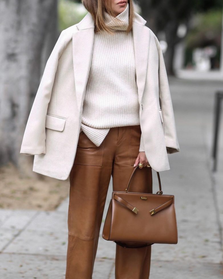 Кожаные брюки – это безоговорочный тренд зимы 2021 года. Большое количество фасонов кожаных брюк позволяют подобрать модель под любые параметры женской фигуры. Также брюки смогут дополнить дерзкий уличный стиль или стать главной деталью в офисном луке. Особенно кокетливо смотрятся кожаные брюки в зауженном фасоне, единственное, выбрать их могут только самые стройные красавицы.