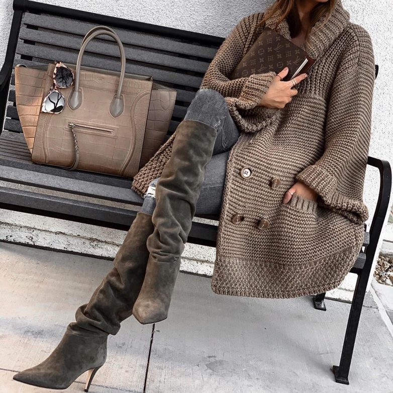 Если вы хотите получить максимальную отдачу от вашего любимого кардигана, научитесь сочетать его с другими деталями, чтобы он выделялся. Идеальным сочетанием является длинное платье-свитер, дополненное высокими замшевыми сапогами до колен. Хотите стать королевой моды? Дополните этот наряд ремешком и большими солнцезащитными очками.