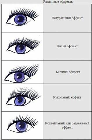 Лисий эффект — самые короткие ресницы располагаются у внутреннего уголка и плавно растут до самых длинных на внешнем уголке. Эффект подходит для девушек с европейским веком;