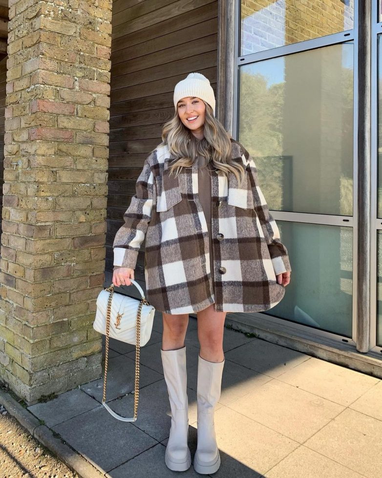 Самый уютный и теплый лук можно создать при помощи стильной теплой рубашки в клетчатом принте. Объемная рубашка позволит полностью заменить любую верхнюю одежду, но подойдет она только для теплых деньков весны.