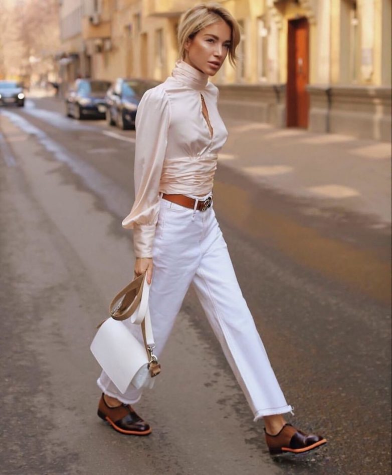 Лето ещё не наступило, но на улицах уже появляются прекрасные девушки в белых джинсах. Так происходит потому, что подобная одежда может ассоциироваться только с тёплым временем года. Несомненно, и в 2021-ом белые джинсы займут почётное место среди необходимых и модных вещей в гардеробе каждой женщины.