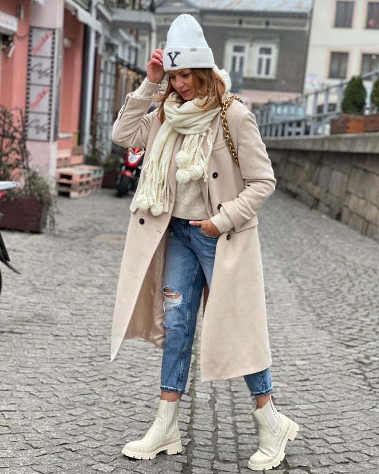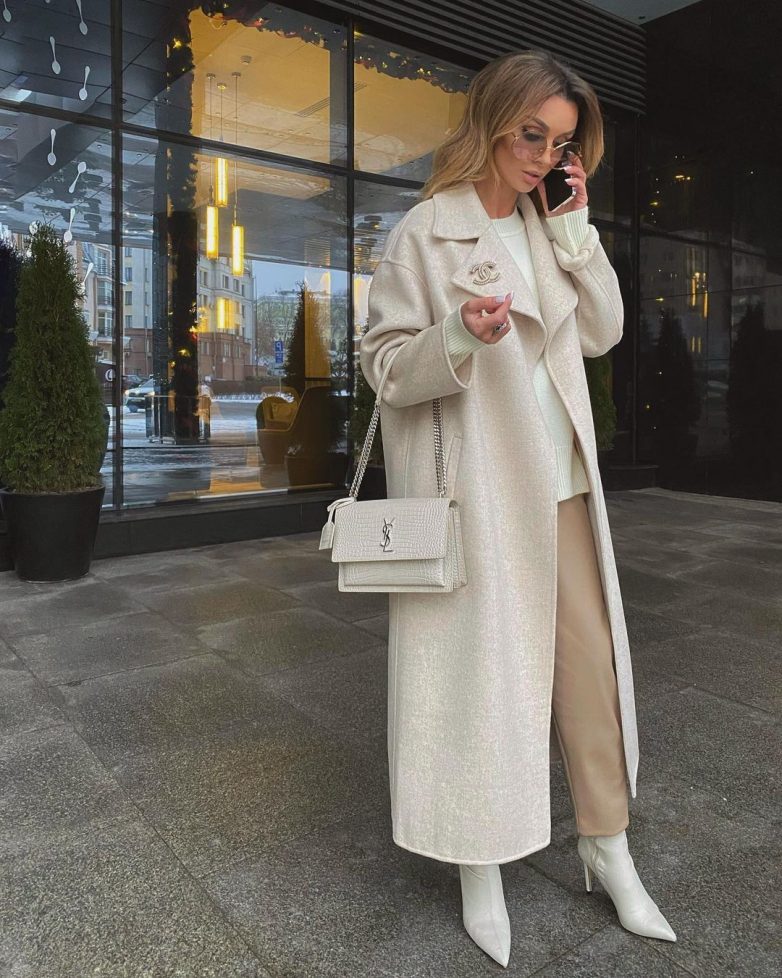 Светлые пальто прекрасно дополняются различными цветами. Под них можно надеть одежду сдержанной цветовой гаммы, а можно разбавить образ яркими цветами, создавая стильные или даже креативные луки.