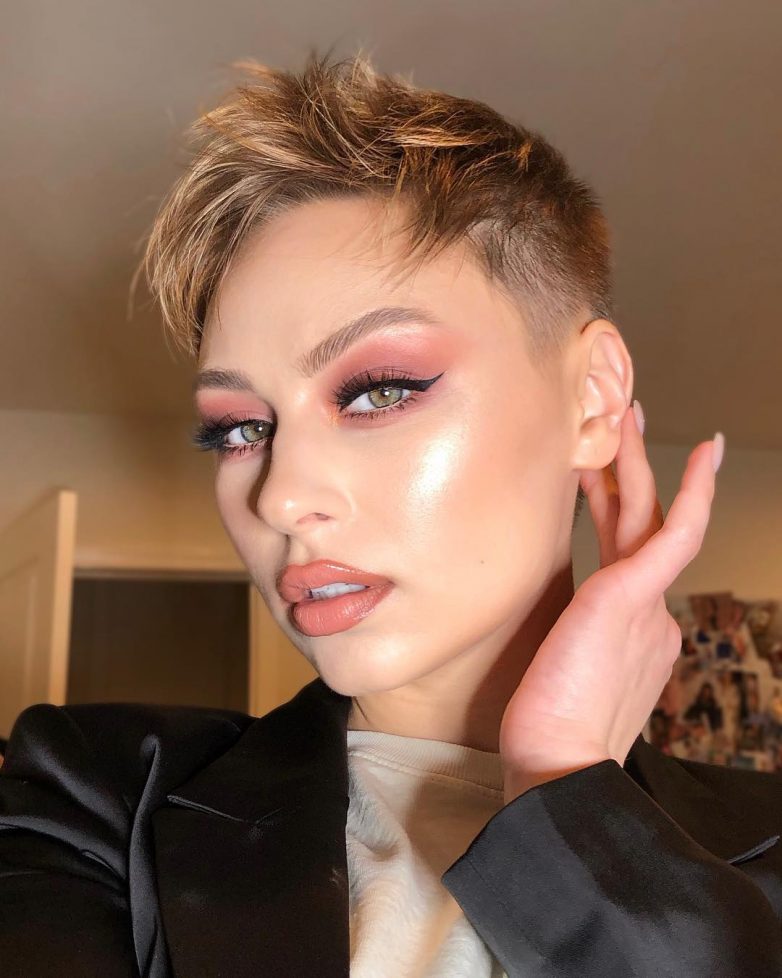 Контролируйте интенсивность нанесения, растушевывая от линии ресниц по верхнему веку.