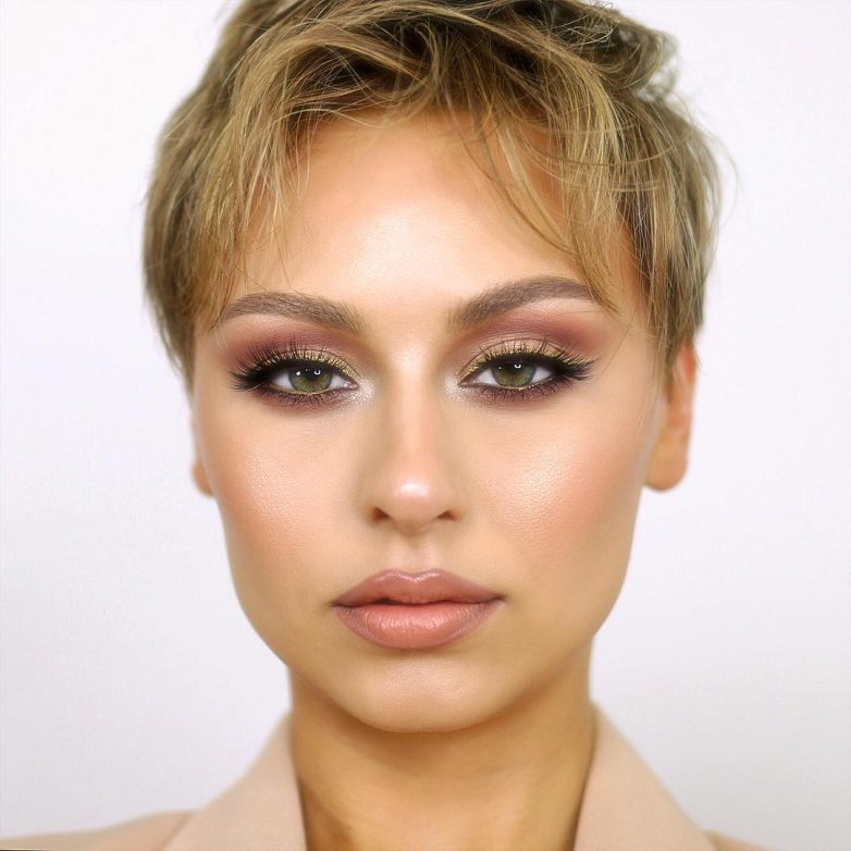 Не нужно прилагать какие-то особые усилия, чтобы подчеркнуть природную женскую красоту. Придать образу шарм может неяркий макияж в спокойных тонах, он всегда выглядит современно. Ну а главный акцент, конечно, идет на макияж глаз.