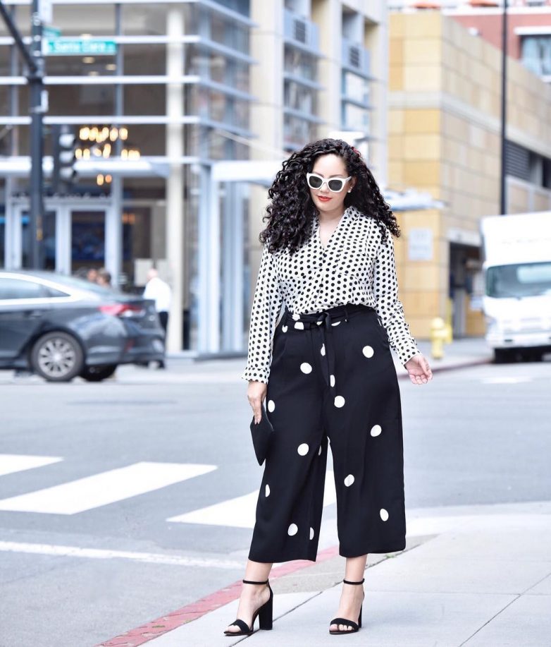 С чем носить блузку в горошек полным леди
