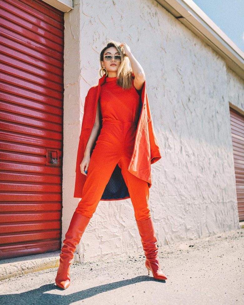 20 стильных образов с красными сапогами