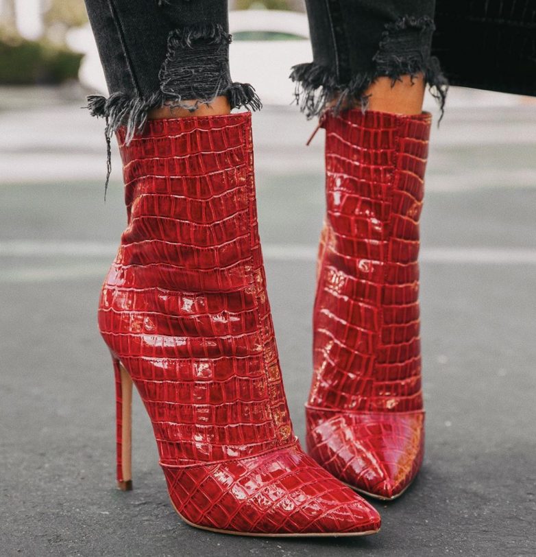 Ботильоны больше подойдут девушкам с длинными ножками. Их можно сочетать с различными образами. Неплохо смотрится ботильоны красного цвета со рваными джинсами или коротким платьем для романтического свидания. Такая обувь удлинит ваши ножки.