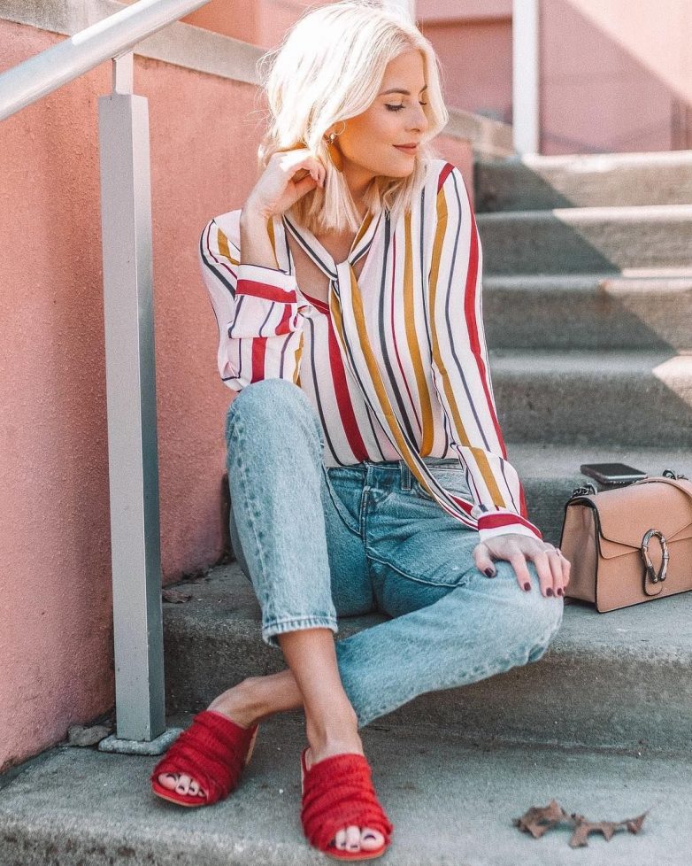 Переходим к главному – принты для женщин с ростом до 160 см. Вертикальные полосы – это именно то, что чаще всего должно присутствовать в одежде. Если, кроме невысокого роста, вы обладаете стройной фигурой, то вам позволительны и другие варианты модной одежды.