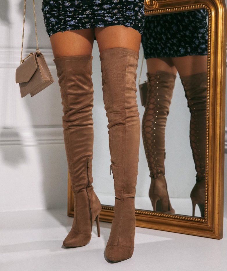 Обращайте внимание на подол платья или юбки – они могут соприкасаться с верхом сапог, закрывать их или быть намного выше. Все зависит от пропорций и роста.