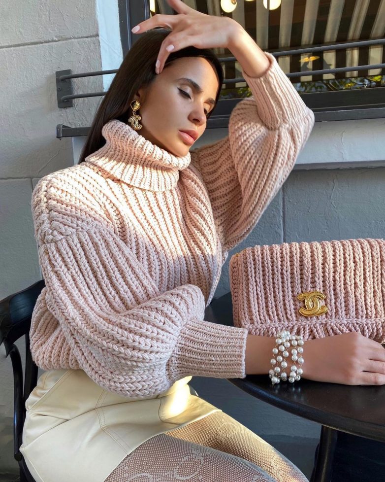 Свитера в стиле оверсайз популярны у девушек с крупной верхней частью туловища. Эти модели скрадывают лишний объем, корректируя фигуру.