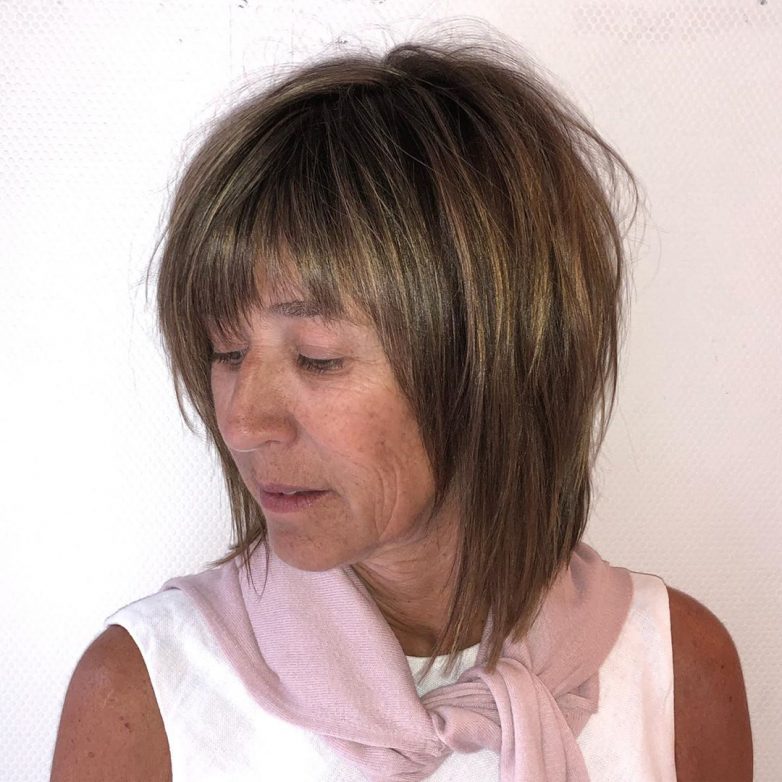 Модные средние стрижки с чёлкой для женщин старше 40 лет