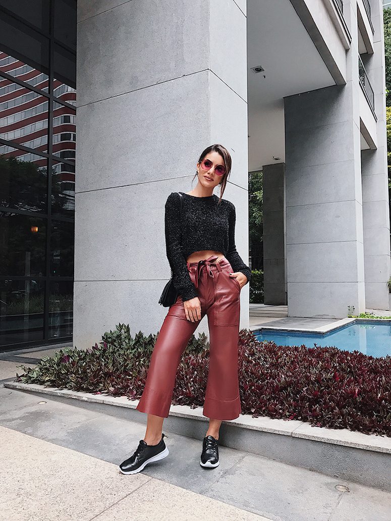 Хорошо гармонируют с джинсами и брюками винных оттенков черные кожаные куртки. Однако, необходимо помнить о том, что в таких сочетаниях должно присутствовать светлое пятно: белая рубашка, бежевый свитер или кремовая водолазка.