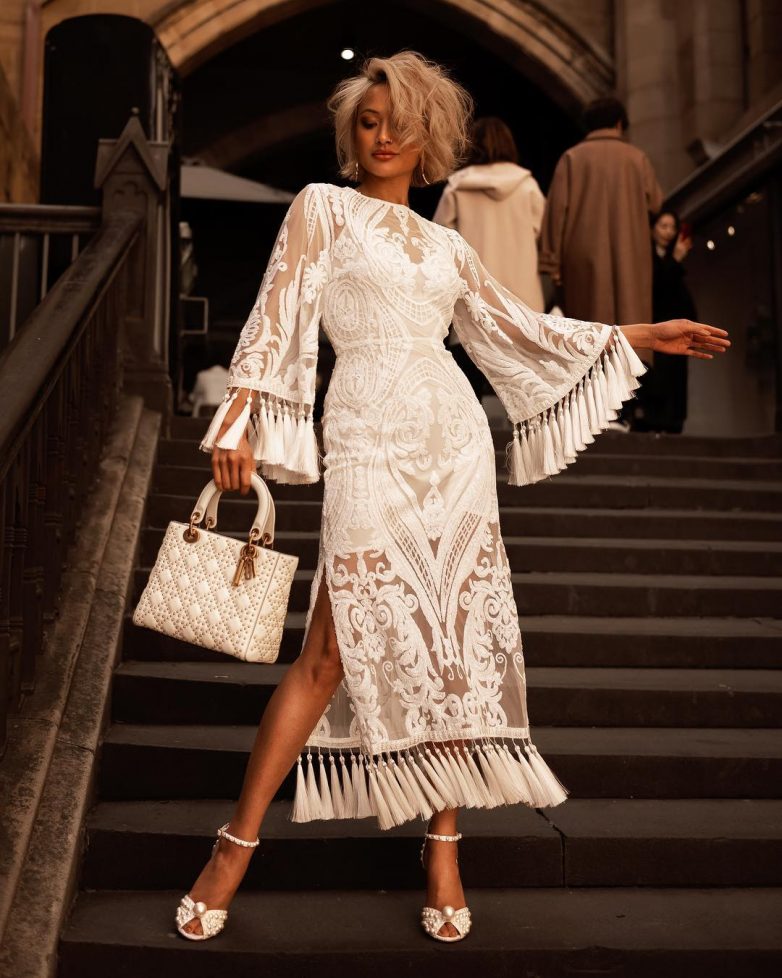 Белое платье предназначено не только для свадебного торжества. Женщины могут выбирать наряд для любых мероприятий. Сочетать белый цвет достаточно легко, поэтому выбирайте смелые решения и ваш вкус оценят по достоинству.