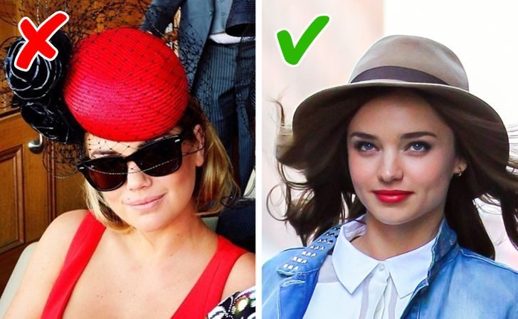 Высокие шляпы или объемный декор на них сделает лицо слишком длинным, поэтому их лучше оставить на полке. Тот же эффект дадут не в меру узкие поля.