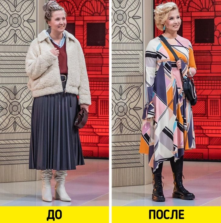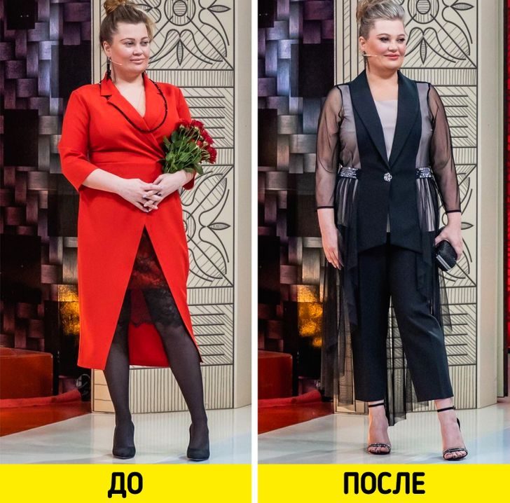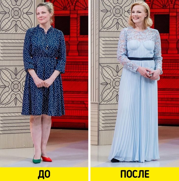 Не очень понравилось… многим женщинам стилисты только добавили года.Еще;-понятно, что девушка(женщина) в домашней и спортивной одежде не пойдет в театр, ресторан...., т.е. каждая себя переоденет..., вот здесь и не было перемен от стилистов..-в основном предложили домашнюю одежду просто снять…
