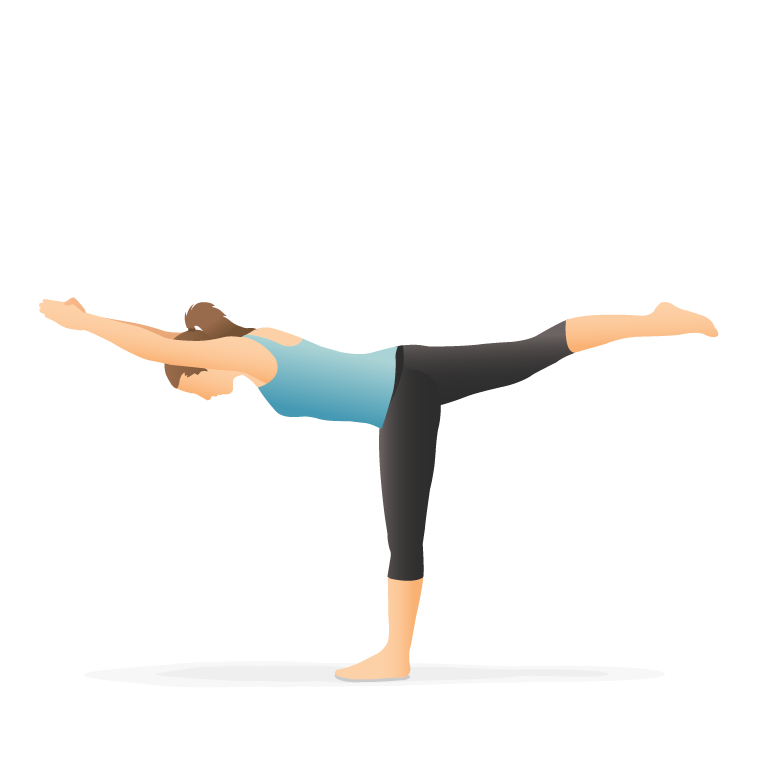 указательные пальцы направить вверх, одновременно наклонившись и подняв левую ногу, чтобы она находилась на уровне корпуса;