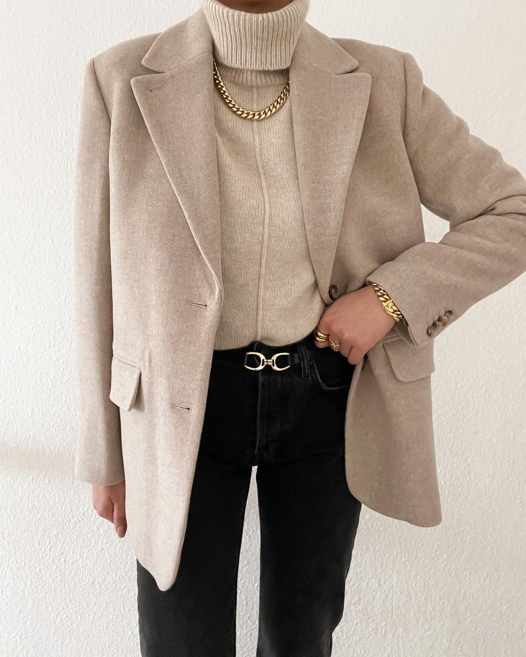 Черные джинсы + пальто