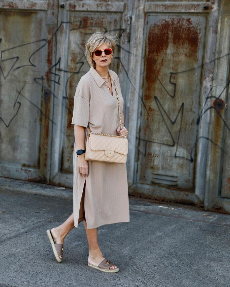 Бежевые оттенки для образа в уличном стиле дамам 40-50 лет