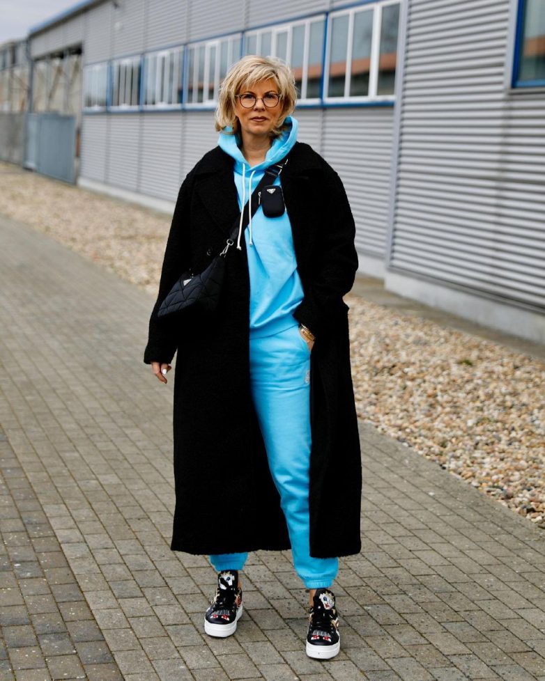 Классика и спорт — образ в уличном стиле для дам 40-50 лет