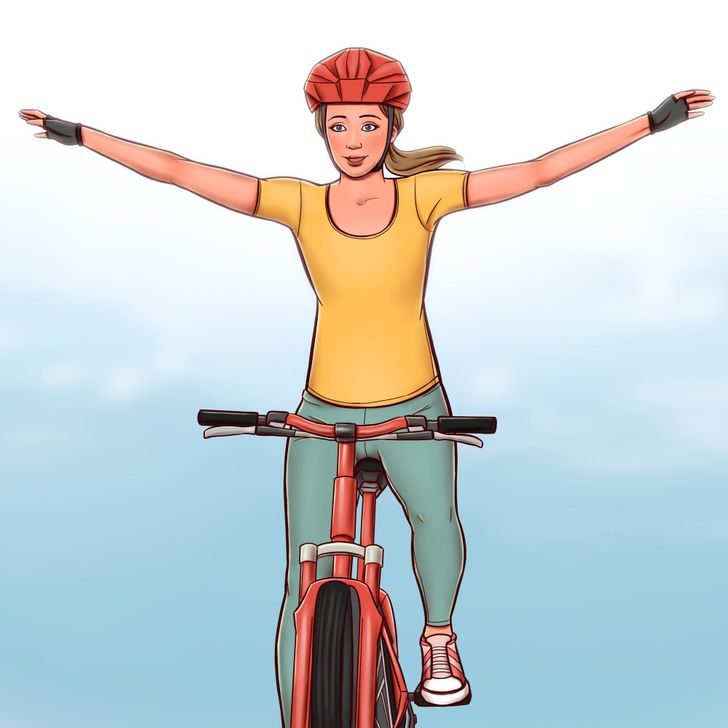 Во время езды на велосипеде не только сжигаются калории, но и тренируются мышцы, в первую очередь ягодичные и икроножные. Кроме того, вы задействуете мышцы пресса, чтобы удерживать равновесие, и мышцы рук, чтобы управлять рулем. Но при сердечно-сосудистых заболеваниях, артрите, истончении костей и других проблемах со здоровьем нужно обязательно посоветоваться с врачом: возможно, увлечение велосипедом вам противопоказано.