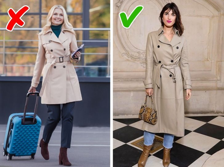 Согласно правилам французского стиля, классический тренч не следует застегивать на все пуговицы. Главное правило при ношении этого предмета гардероба — небрежность. Вы должны выглядеть слегка небрежно, будто собирались впопыхах. Изюминку образу добавит завязанный пояс.