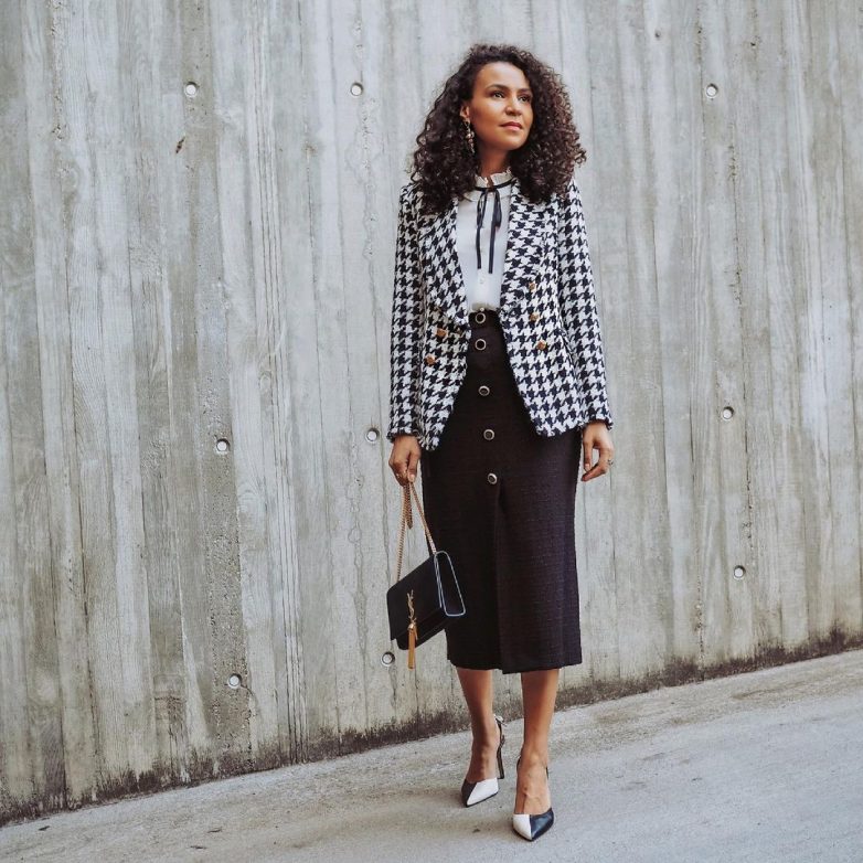 Длина у платьев для дам 40-50 лет должна быть строгой: миди. При выборе пиджака и костюмов стоит рассмотреть, кроме классики, модный оверсайз.
