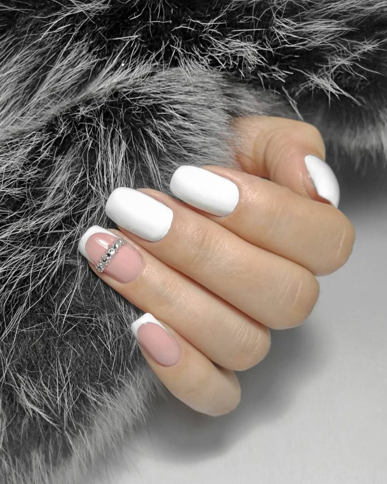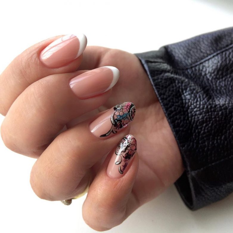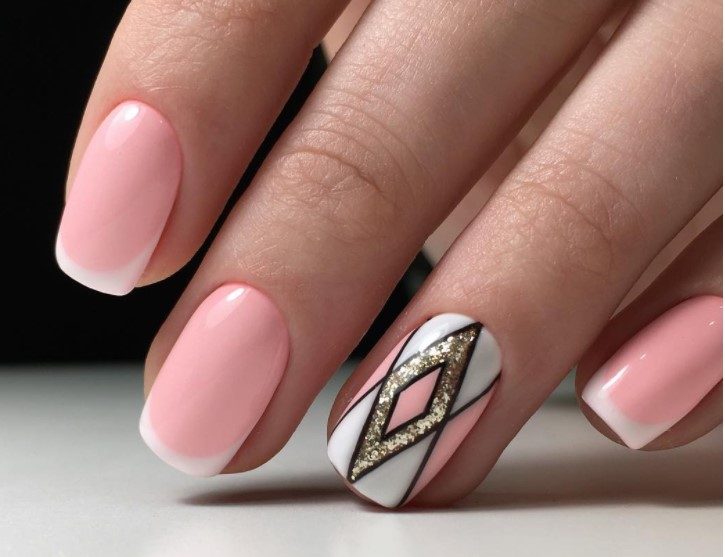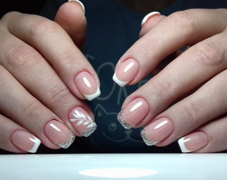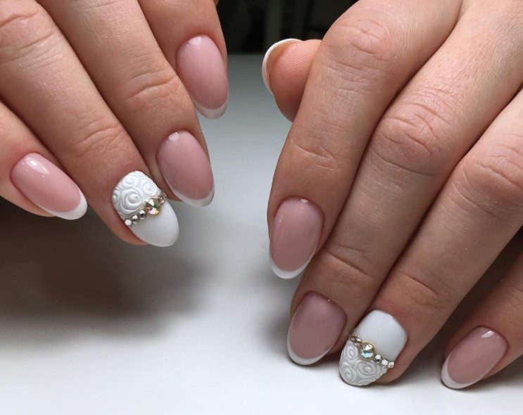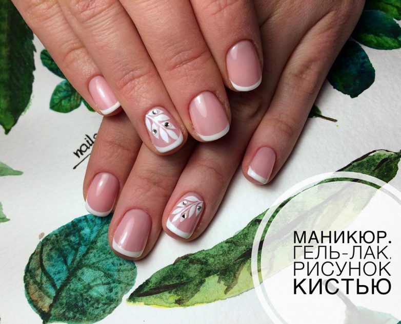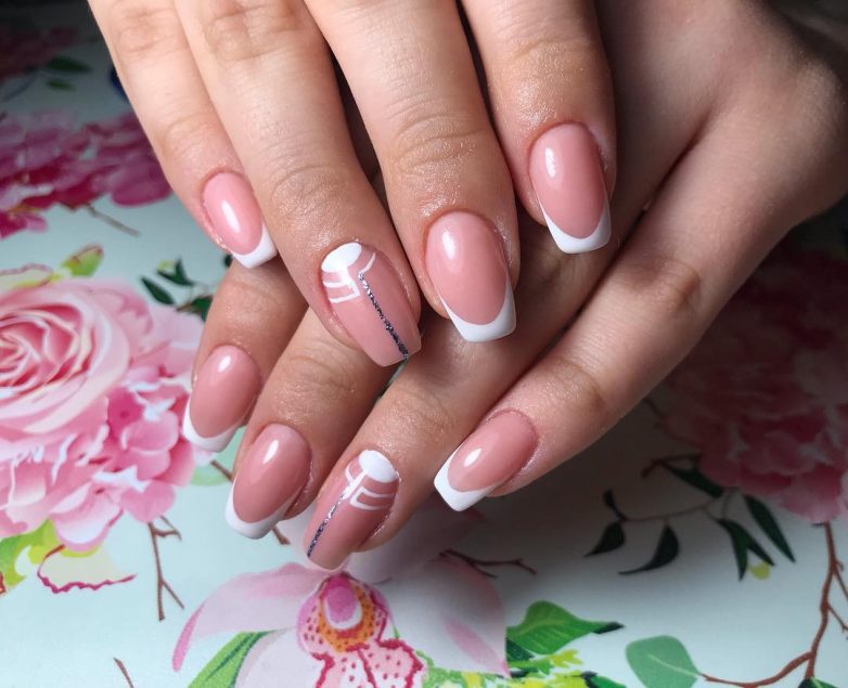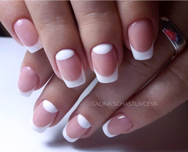 А в том, что во французском маникюре главное сочетание — это нежно-розовой или нежно-бежевой основы и кончик ноготка рисуется красивый контур, словно улыбка, белым цветом, такое сочетание цвета давно уже стали классикой в модной индустрии, ногтевой индустрии и нейл-арте.