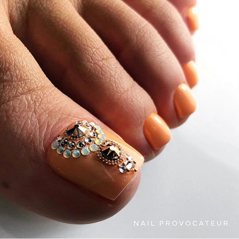 Кроме того, ни в коем случае не забывайте про декор. Последний способен сделать ваши ножки средоточием красоты и изящества. Модные стразы, фольга, паутинка, скотч-летнта, втирка или глиттер — помогут вам получить идеальный педикюр для любого случая жизни.