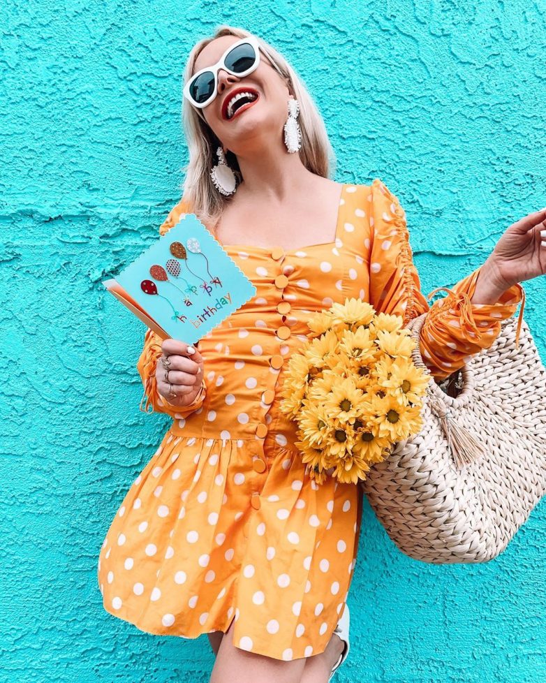 Аутфины с горошком предлагают женщинам быть в образе элегантной и стильной дамы. Одежду с таким принтом выбирают для различных мероприятий. В стильном платье можно отправиться на работу, блузка улучшит деловой костюм, а стильный комбинезон позволит быть самой яркой на прогулке.