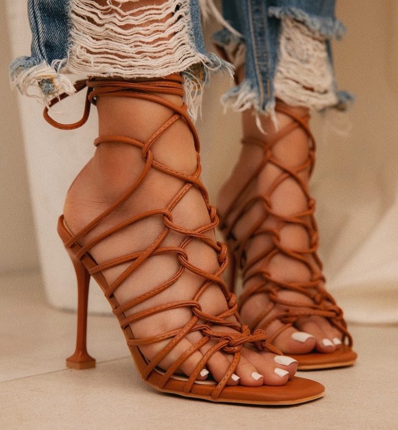 Особо элегантно и женственно смотрятся босоножки на высоком каблуке с длинными переплетающимися на щиколотке ремешками. Они отлично смотрятся в тандеме с легкими платьями, брюками, шортами. В таких босоножках походка женщин становится более изящной и грациозной.
