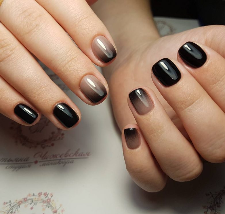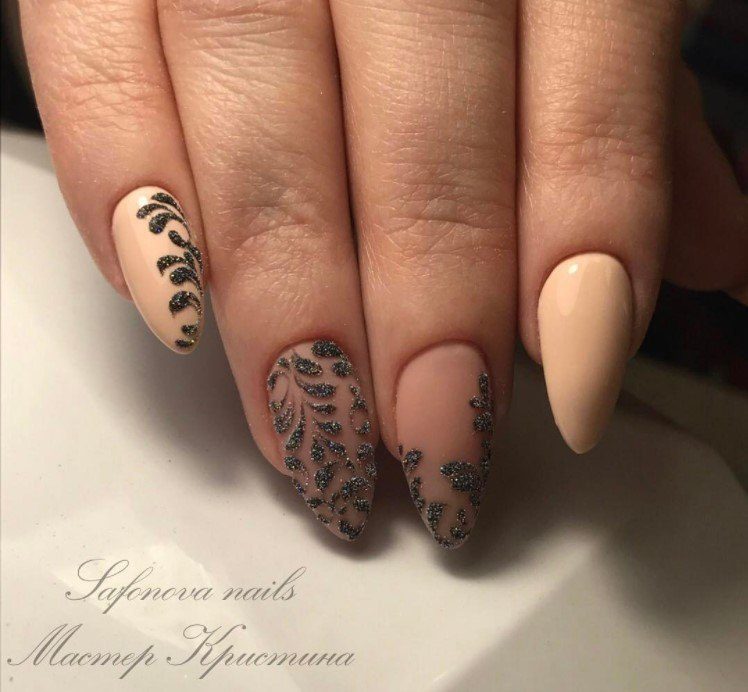 Бежевый маникюр с черным цветом 2021: фото идеи
