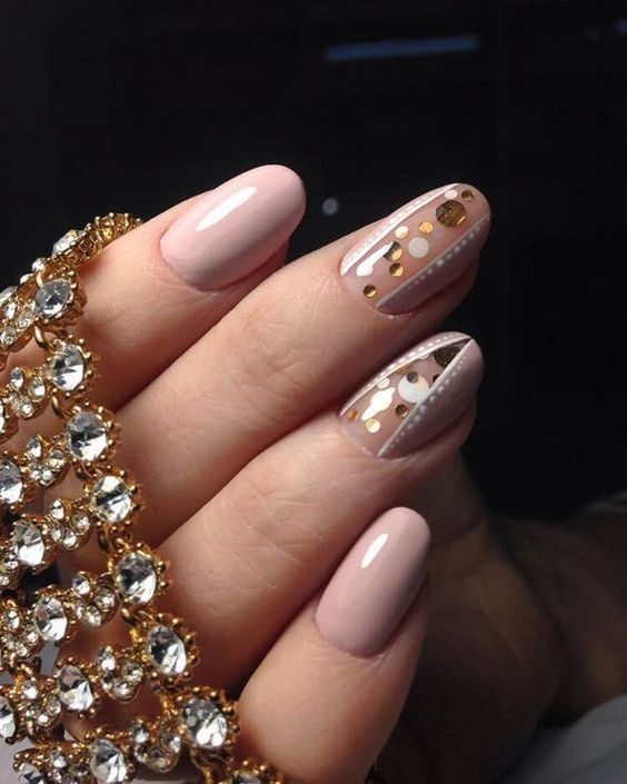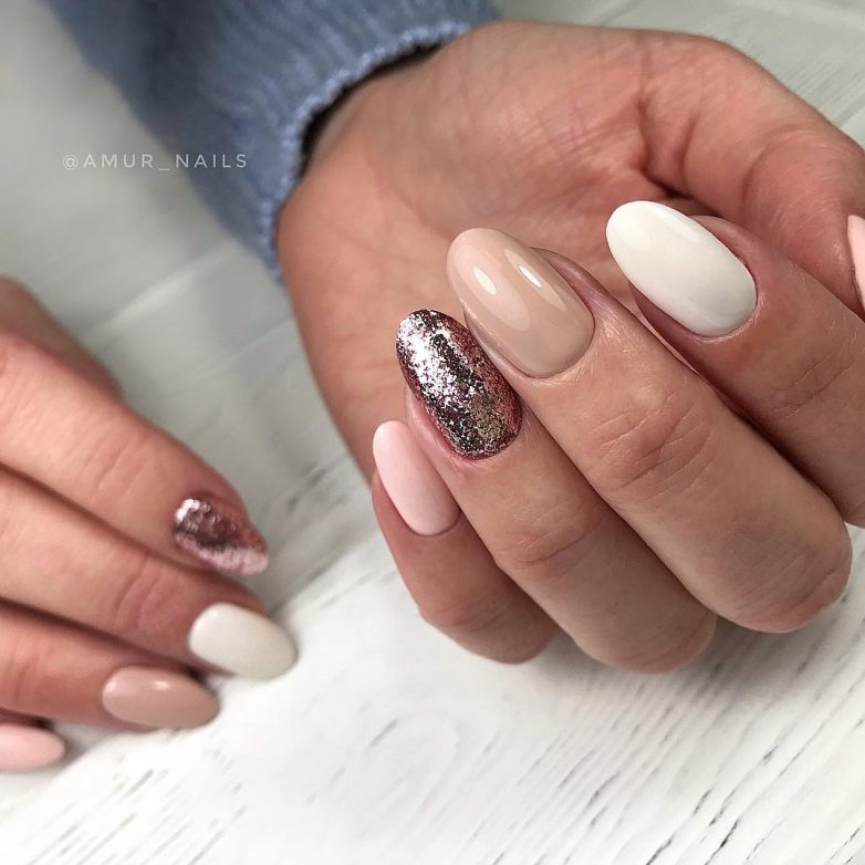 Хотите сделать максимально нежный и женственный нейл-арт? Обратитесь к бежево-розовому маникюру, который станет украшением вашего вечернего, повседневного или делового лука. Украсить такой дизайн вы можете сверкающими стразами, блестками или фольгой. Впрочем, можете и самыми популярными техниками.