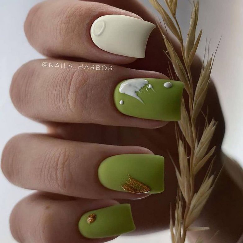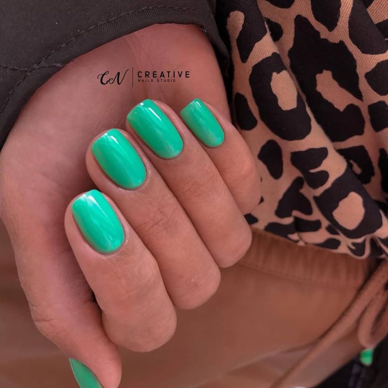 При упоминании мая на ум приходят яркое солнце и зеленая травка. Именно поэтому стоит выбрать для своего стильного маникюра зеленые оттенки. Причем в моде не только приглушенный и натуральный тон зеленого, но и невероятно яркий кислотный цвет лака.