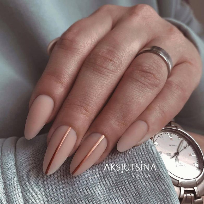 Нюдовый дизайн по-прежнему в моде. Нежные леди могут выбирать однотонное покрытие или дополнить стильный нюд минималистическими рисунками.