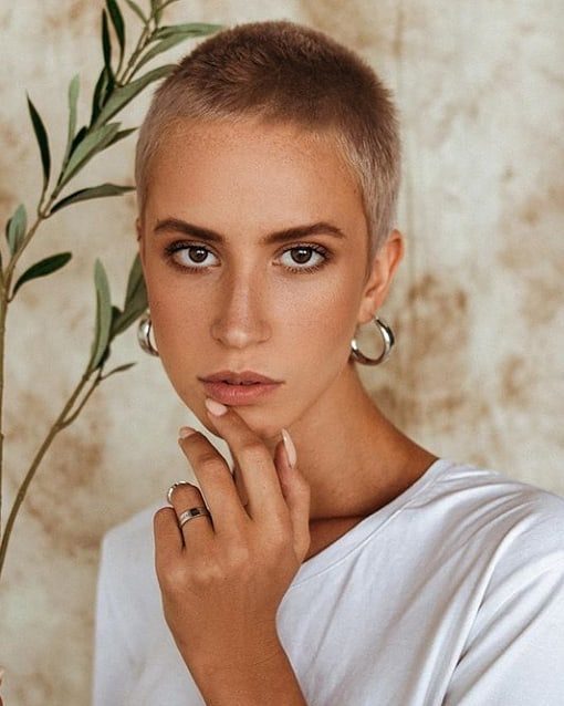 Стрижка ежик подойдет женщинам с правильными чертами лица и выразительными глазами. Нередко такую прическу выбирают обладательницы пухлых губ, короткие волосы смогут еще больше их подчеркнуть.