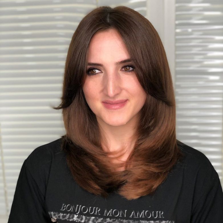Одним из самых стильных вариантов длинных стрижек для женщин после 30 лет является рапсодия. Многослойность и изысканность этой прически уже много лет не отпускают ее с лидерской позиции.