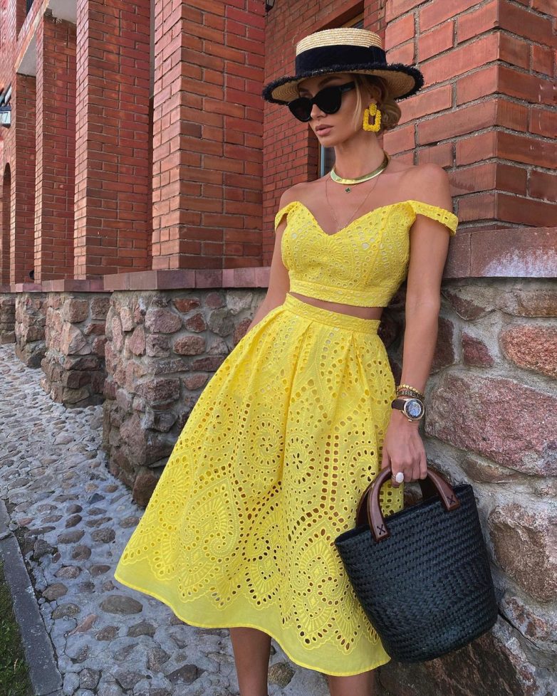 Обувь к кружевной юбке выбирают в зависимости от верха. Если это кроп-топ, рубашка или легкая блузка – однозначно обувь на каблуке, причем лучше выбирать именно лодочки или шпильки.