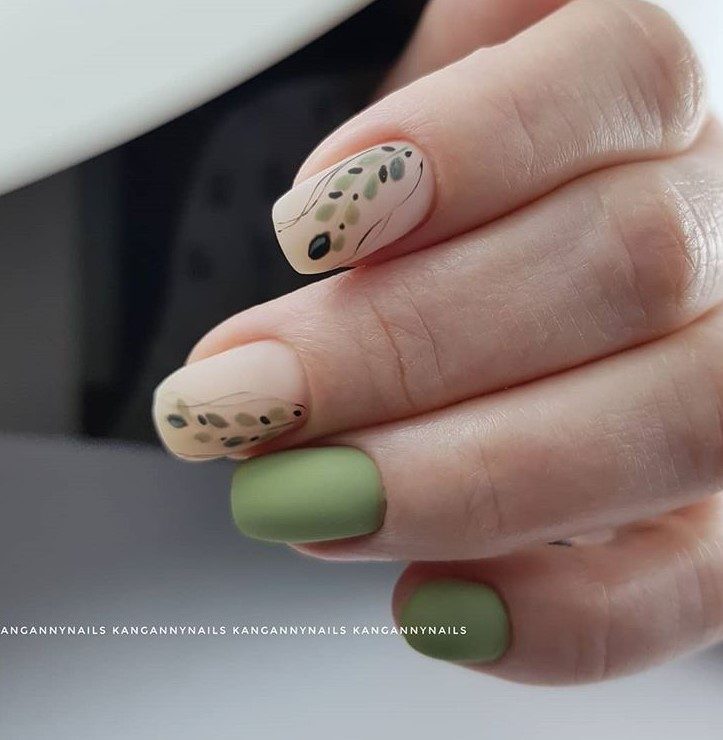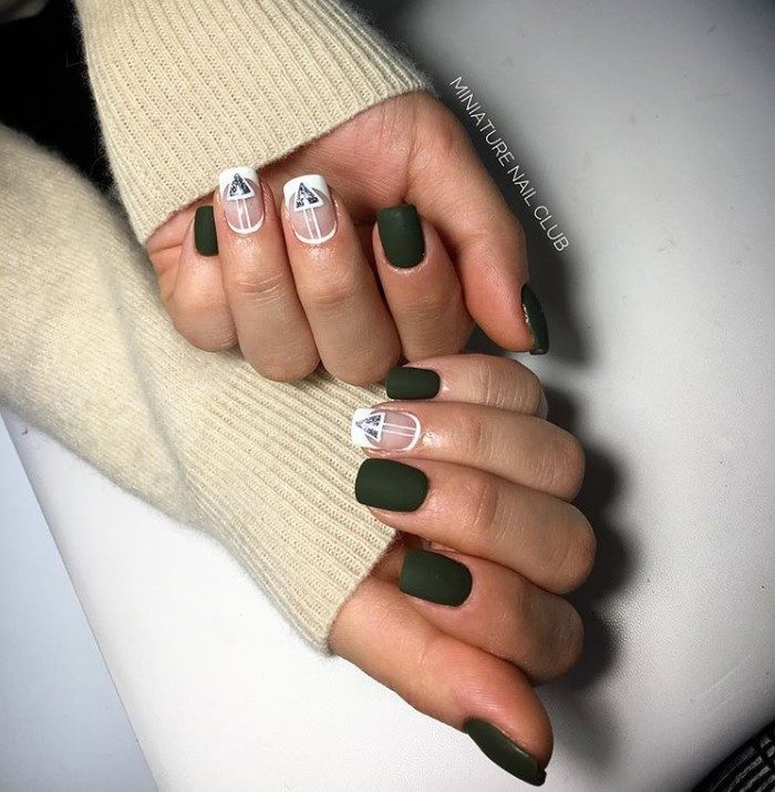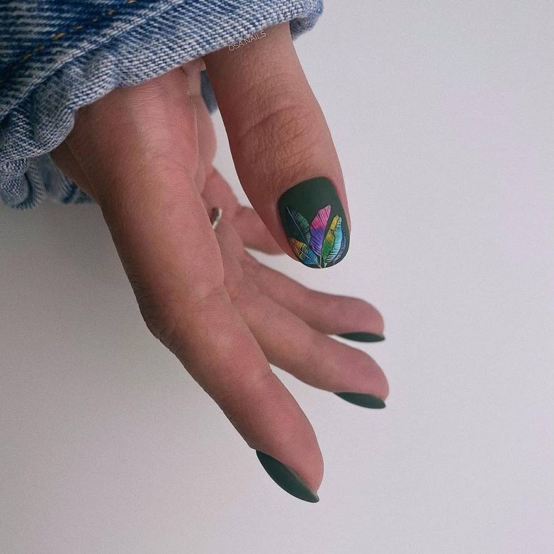 Зеленый маникюр с дизайном