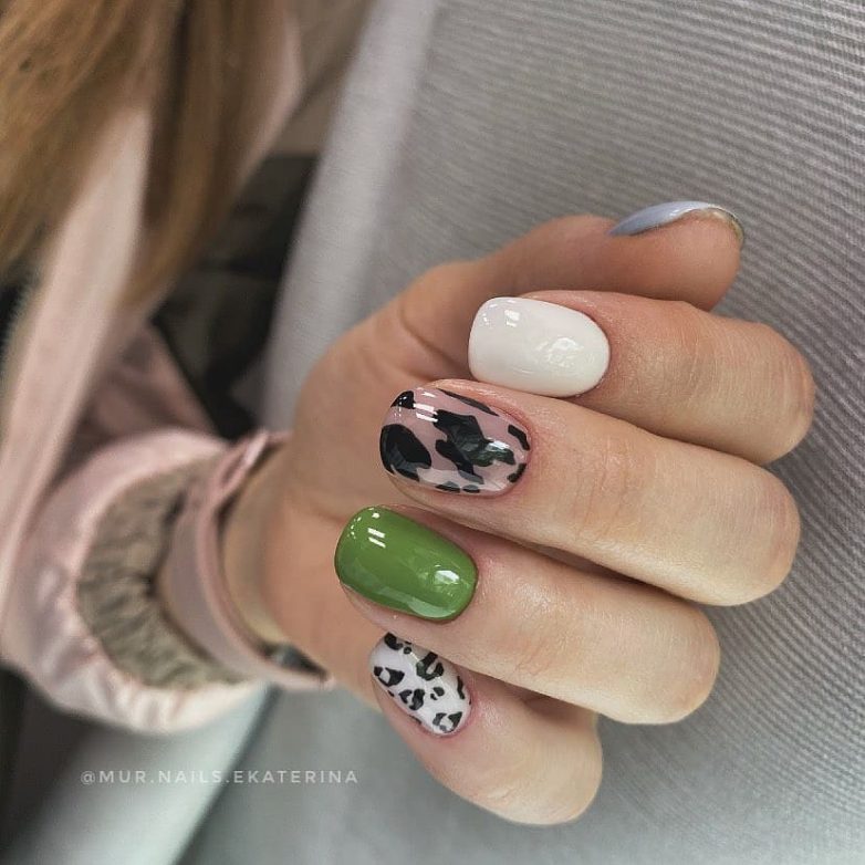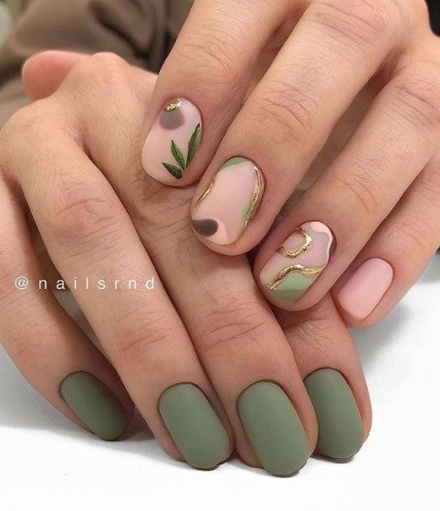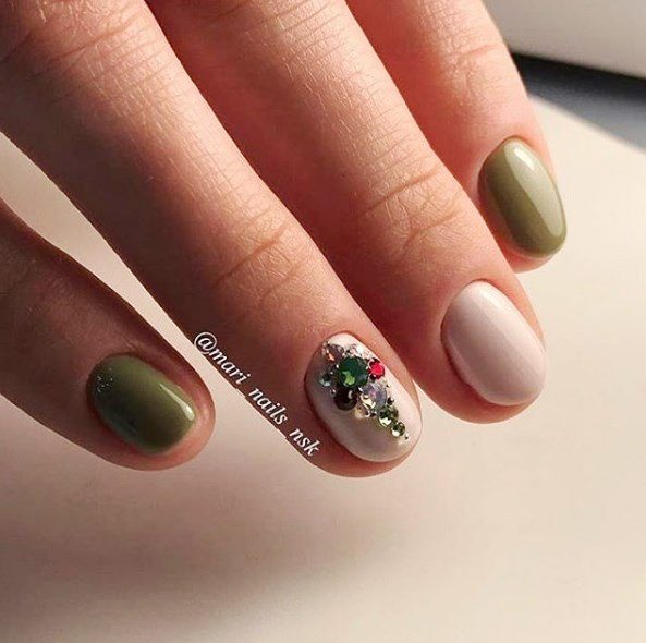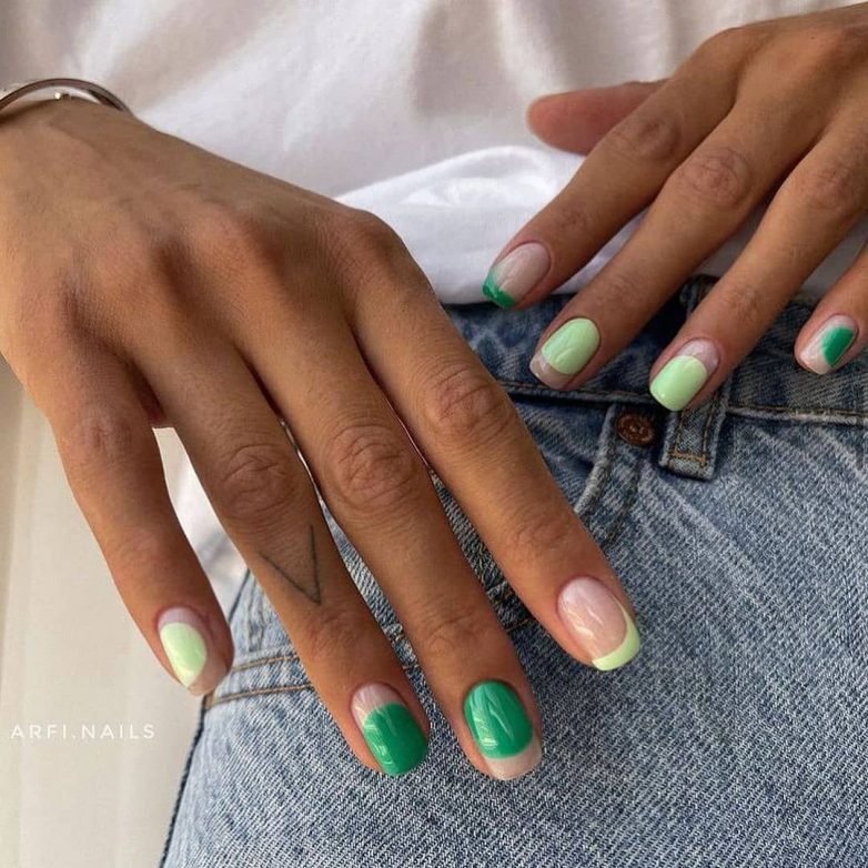 Идеи зелёного маникюра на короткие ногти