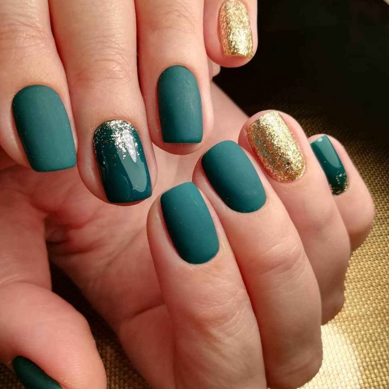 Зеленый маникюр с блестками